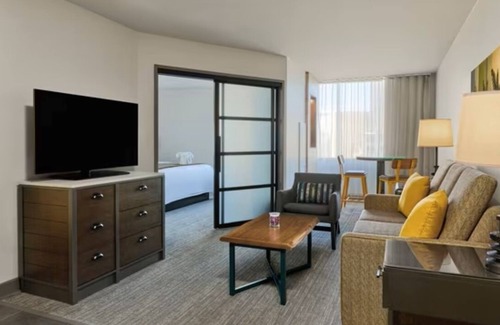 Suites consist of two double beds and a sleeper sofa in the common area (max occupancy: 6). This suites come with a minifridge, microwave, and small sink. The sleeper sofa is made by American Leather and is very comfortable (no springs, no sagging). Parking is not included with the rental. See Marriott website for complete details (parking fees, wifi, etc.).