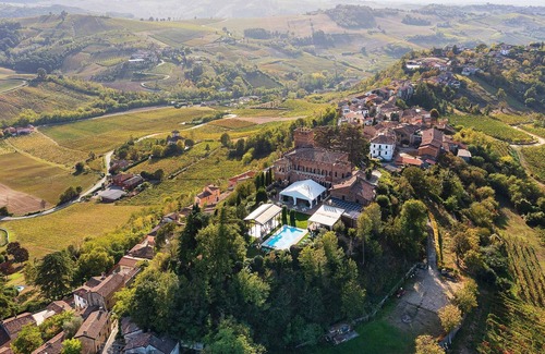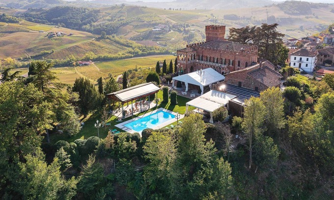 Enjoy a magical private stay in this marvellous castle with pool overlooking the vineyards in Mornico Losana.