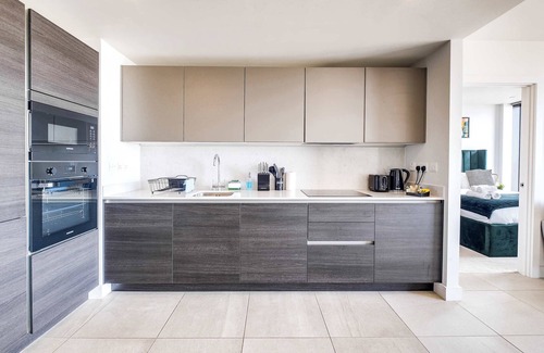 A luxurious 2-bedroom apartment featuring a breathtaking view of Birmingham's skyline, with a sleek, modern kitchen and open plan living area. An ideal home away from home to explore Birmingham and all that it has to offer.