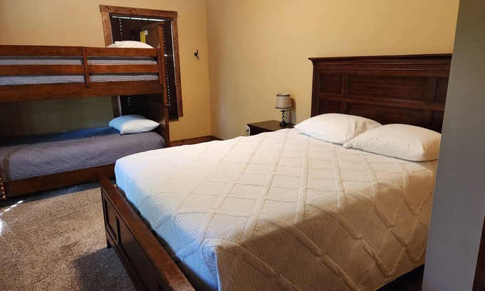 Discover the beauty of Saugatuck from this fantastic 10-bedroom estate. With 10 queen beds, 7 bunk beds, and 1 twin bed, this cool property offers a tranquil escape for guests. Enjoy the convenience of amenities like an iron, hair dryer, more. The 5 bathrooms are equipped with hair dryers, showers, and bathtubs for your comfort. We hope you'll enjoy your stay at our estate.