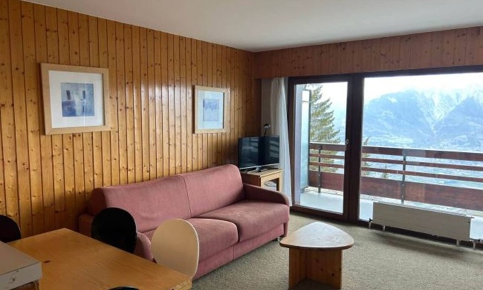 Stay in this cozy 2-star studio, perfectly located in the heart of Veysonnaz, Switzerland, offering breathtaking views of the valley and mountains. Accommodating up to 4 people, the 25 m² space features a comfortable living room with a sofa, two armchairs, a folding double bed, cable TV, and a stereo system, as well as free Wi-Fi. The open kitchen comes fully equipped with a coffee machine, oven, microwave, and a fondue set, ideal for preparing delicious meals during your stay. The studio also has a balcony overlooking Nendaz, perfect for relaxing and taking in the view. The studio includes a convenient entrance hall with a bunk bed and a bathroom with a shower and WC. The residence offers additional amenities such as a ski room and a laundry facility (available for an extra charge). Public parking is available nearby, subject to availability. Pets are welcome, and the property is accessible by elevator. The location places you just 650 meters from the cable car and only a short walk from shops, restaurants, and leisure activities, making it ideal for both winter and summer vacations. As an Alpvision guest, enjoy access to the public swimming pool (during the summer and winter seasons, closed in low and mid-season), and participate in the Sun and Fun activity program for all ages during the high summer season. Additional services like bed linen, final cleaning, and gourmet baskets are available for an extra charge.
