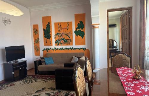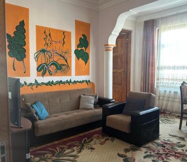 Providing a garden, Maryams Guesthouse offers accommodations in Zugdidi. This property offers access to a balcony, free private parking, and free Wifi. The accommodation provides bicycle parking and a shared lounge for guests. Offering a terrace and garden views, the spacious apartment includes 1 bedroom, a living room, flat-screen TV, an equipped kitchen, and 1 bathroom with a walk-in shower and a bath. Towels and bed linen are offered in the apartment. For added privacy, the accommodation features a private entrance. Kutaisi International Airport is 52 miles from the property.