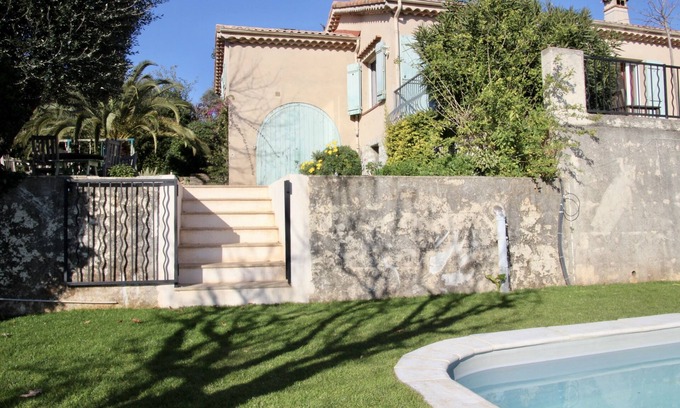Mas Provençal with sea view! is located in Biot. Mas Provençal with sea view! provides accommodation, featuring Balcony/Terrace, Wellness Facilities, Fireplace/Heating, among other amenities. This House features Balcony/Terrace, Wellness Facilities, Fireplace/Heating, to make your stay a comfortable one.