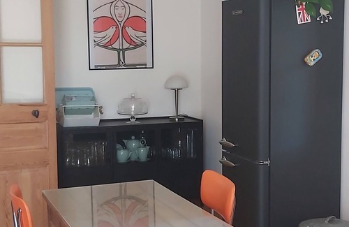 Prepare a home-cooked meal in the kitchen, complete with an oven, a stovetop, and a refrigerator, as well as an electric kettle, a microwave, and cookware. And you can even travel light because you'll have access to laundry facilities. Other amenities include an ironing board, heating, and a dining table.