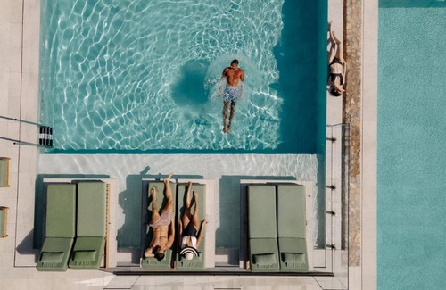 Three inviting pools, including a serene Quiet Zone Pool, beckon guests to cool off and unwind amidst the Mediterranean sun. For quieter moments, the playroom and small library provide retreats for contemplation and relaxation, while connoisseurs of Greek wines can explore the curated wine cellar.