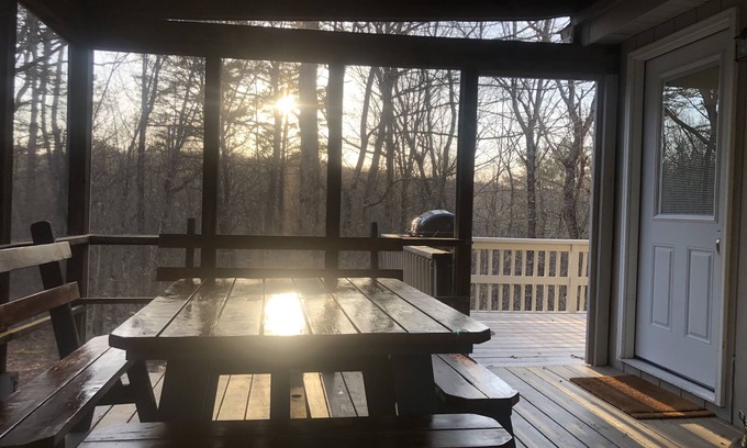 The cozy home in the Masthope community is a serene retreat amidst nature. It's ideal for families seeking to unwind and escape the city's hustle and bustle. The tranquil cabin setting in the woods offers a peaceful atmosphere, perfect for relaxation and enjoying the natural surroundings. The complimentary coffee bar is a thoughtful addition, providing guests with a cozy spot to start their mornings or enjoy a relaxing cup of coffee during the day. It adds a touch of comfort and convenience to the cabin experience. Masthope community itself offers a range of amenities and activities to enhance the stay, fostering a well-rounded vacation experience.