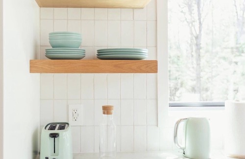 In Matcha Forest, there is a blue house and a cute little A-Frame cabin. 2 Queen beds in the house and 1 Queen bed in the cabin. They both have a full kitchen and a full bathroom. The house is suitable for 4 people and the cabin is suitable for 2 people max.