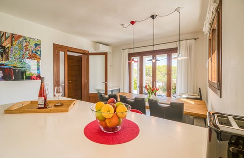 Villa Matheo is an exceptional holiday villa located in the peaceful coastal village of Betlem, in the municipality of Artà, Mallorca. This exclusive accommodation is part of the 5StarsHome portfolio, the leading holiday rental company in Mallorca and Ibiza, and has been designed for families, couples or groups of friends looking for a relaxing stay by the sea. Its privileged location just 250 metres from Betlem Beach offers breathtaking views of the Mediterranean Sea, the mountains and the private garden, in a quiet natural setting perfect for switching off.The property features 140 m² of built space, distributed over two floors, on a fully fenced plot of more than 1,400 m². It offers 3 spacious and bright double bedrooms, as well as 2 full bathrooms with shower, comfortably accommodating up to 6 guests. The interior is modern, functional and welcoming, with air conditioning in all rooms and heat pump heating to ensure optimal comfort all year round. High-speed WiFi and a TV are also provided for your convenience.The independent kitchen is fully equipped with modern appliances, including a ceramic hob, oven, microwave, dishwasher, washing machine, dryer, fridge, and more. All crockery and utensils needed to prepare home-cooked meals are provided. The indoor dining area and outdoor terrace offer different settings to enjoy sunny breakfasts or relaxed dinners in the open air, surrounded by nature.Outside, Villa Matheo boasts a complete private outdoor area with an 8x4-metre pool, sun terrace with loungers, furnished patio, a well-kept Mediterranean garden, and a barbecue perfect for family meals. The property also includes 2 private parking spaces and is close to local attractions such as Cala Fonda, the Colònia de Sant Pere, the charming town of Artà, and hiking routes leading to the Ermita de Betlem or the Llevant Peninsula Natural Park. Don’t miss the chance to enjoy an unforgettable holiday by the sea. Book Villa Matheo now with 5StarsHome and fall in love with the authentic Mallorca.