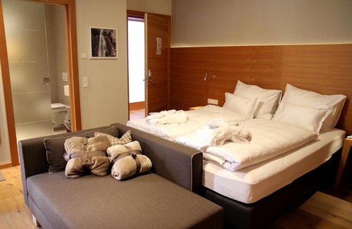 Mats Lech Alpenquartier is a 5-minute walk away from the center Lech, and offers a spa area, an indoor swimming pool, a fitness room, and rooms with attached bathroom and apartments, as well as free WiFi access. The Rüfikopfbahn Cable Car can be reached within a 5-minute walk. All rooms and apartments have wooden furniture and feature a balcony or a terrace offering panoramic mountain views. A basket with towels and slippers is also provided in the rooms. Every morning a breakfast buffet, containing homemade products from local farmers, is available at Alpenquartier Mats Lech. A bar with a fireplace and a sun terrace are also at guests' disposal. At Mats Lech Alpenquartier, guests will find a sauna, BIO sauna, infrared cabin and a Kneipp basin. Other facilities offered include a ski storage with ski boot dryer and children's games room. The free ski bus stops right on the doorstep. Cross-country tracks can be accessed just 328 feet from the property. The Schlegelkopf Ski Elevator is only a 7-minute walk away.