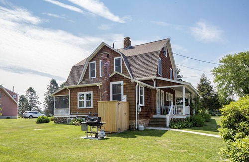 Create lasting memories in this quintessential beach cottage. The home combines the charm of the turn of the century gambrel with updated modern comforts. As you enter the home you are greeted with an updated kitchen, offering white stone countertops and propane stove, perfect to prepare a gourmet meal after a day at the beach. There is a dining table for all to gather to enjoy family meals or a game night. The large living room offers multiple seating areas and the large original stone fireplace adds to the ambiance, though only for decoration.