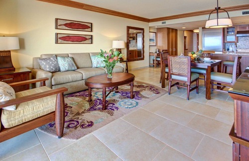The Hyatt's one bedroom oceanfront villas blend passively into the warm, white sands of Ka'anapali and the cool, tranquil waters of the Pacific. Guests can expect an unparalleled family experience that will provide years of happy memories to follow. This 1 bedroom oceanfront upper villa is guaranteed to be on floors 5-10 and commands sweeping ocean views.