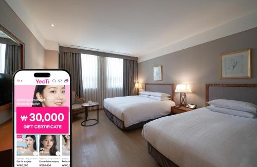 A 5-minute drive from Gimpo Airport, Mayfield Hotel is surrounded by a garden and features 7 in-house dining options, a fitness center, indoor pool and free parking. Accommodations comes with private bathrooms and free WiFi. Rooms, studios and suites at Mayfield offer both air conditioning and heating. Each room is equipped with flat-screen cable TV, hairdryer and writing desk. An electric kettle and mini-bar are also provided. Private bathroom includes a shower and free bath amenities. Selected rooms are also fitted with a bath. Guests can pamper themselves at the hotel’s spa or soak in a spa pool. Traditional Korean, Italian, Chinese and buffet-style restaurants are available at Mayfield Hotel. Hotel Mayfield provides banquet halls, a business center and a barber. Laundry and dry cleaning services are also available. Mayfield Hotel is a 30-minute drive from Incheon International Airport.