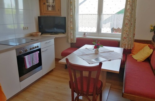 "Mayrhofer", 3-room house 50 m2. Simple and practical furnishings: 2 rooms, each room with 1 double bed. Exit to the terrace. Kitchen-/living room (oven, 4 ceramic glass hob hotplates, toaster, kettle, electric coffee machine) with separate WC, shower, TV and tiled stove. Large terrace 40 m2. Terrace furniture, deck chairs (3). Marvellous view of the mountains. Please note: non-smokers only. Smoke alarm.