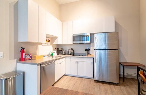 Designed with the traveler in mind, this two bedroom corner Suite (Sleeps 6) caters all your needs in a modern, spacious layout with metropolitan decor that gives this suite a sophisticated edge. The Noor Suite is thriving with downtown vibes. These suite offer guest a modern space with custom comforts that are a cut above the usual Vrbo experience. Each room is uniquely designed to its own stylish accents and convenient amenities to give you the perfect mixture of home and away. At the premium status level, our suite provides you with a premiere experience in a premiere city.