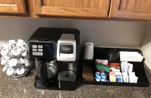 KING SUITE: The King Suite is a 192 sq. ft. room featuring a king size bed with 14" plush memory foam mattress, nightstand, lamp, sleep sound machine with alarm clock, dresser, mirror, computer desk with lamp and chair, 39" flatscreen TV and ceiling fan. The suite has a private bathroom with a shower and a large walk-in closet. This room accommodates two guests.