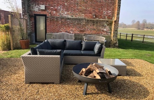 The large kitchen diner over looks the surrounding water meadows, and the bi-folding glass doors and floor to ceiling windows brings nature into the room, giving a truly unique dining experience. The doors then lead out onto a patio and then the garden, which has outdoor seating and a BBQ.