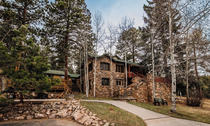 This secluded, historic 1920s hillside retreat is set on a breathtaking, Aspen-lined 34-acres just 30 miles southwest of Denver, Colorado in the foothills of the majestic Rocky Mountains.