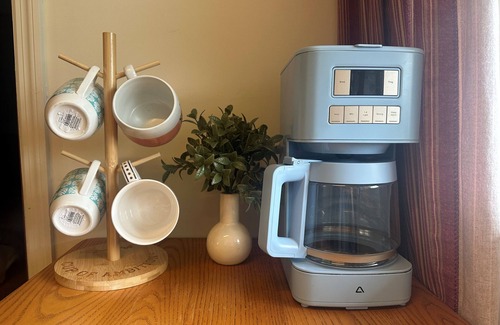 Inside, you'll find a welcoming bedroom furnished with a plush queen-sized bed and a smart TV equipped for streaming, perfect for relaxing after a day of exploration. The suite features a kitchenette with a double electric hot plate, electric griddle, toaster, electric skillet, refrigerator, microwave, and coffee maker — making it easy to prepare your favorite meals. The full bathroom boasts a walk-in shower, adding to the suite's comfort and convenience.