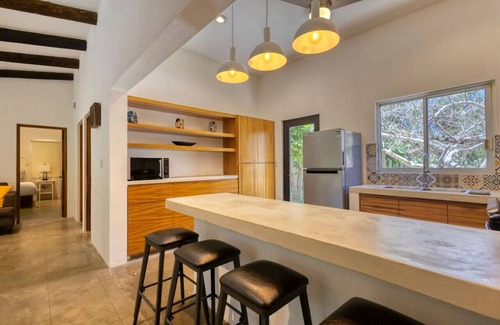 Casa Ciruelo is a beautiful home with a private heated pool (startting in November) , private patio, and plenty of space! This amazing property is designed for those seeking peace and tranquility surrounded by nature. With abundant plants, flowers, trees, and grass throughout, along with palm trees that host birds filling the air with sweet melodies. Jardín Tropical is just 7 minutes from downtown, offering easy access to multiple restaurants, convenience stores, and more.