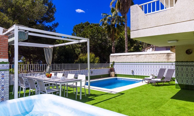 Welcome to our beautiful Mediterranean Villa with a private pool included, where you can enjoy stunning sea views and live unforgettable holidays. This charming villa is located on the seafront, with direct access to the famous sandy cove of Cala Crancs.Our villa has 6 spacious rooms and 3 complete bathrooms, offering more than enough space for you and your loved ones to feel comfortable and relaxed. The dining room is spacious and has modern furniture, including a high-quality sofa bed. The kitchen is modern and fully equipped, providing you with everything you need to prepare delicious meals during your stay.From the living room, you will access a large terrace that offers stunning sea views. Here you will find a barbecue, garden furniture, sun loungers, a spa jacuzzi and a beautiful private pool. You can relax and enjoy the sun while contemplating the crystal-clear waters, as the beach is just a few metres from the villa. In addition, the property is air-conditioned with cold/heat air and has a WIFI connection for your convenience.- Pool Hibernation: Not available from 1 November to 30 April. Check availability.Our chalet is the ideal place for a dream holiday, where you can enjoy pleasant and peaceful moments. The Cap Salou urbanisation is a small paradise, full of wild coves, crystal-clear waters and a flora and fauna declared as protected heritage. You will immerse yourself in a natural and serene environment that will allow you to disconnect from daily stress.IMPORTANT INFORMATION TO TAKE INTO ACCOUNTTourist tax not included in the price. Payment will be requested prior to arrival.A deposit of €1,000 with a credit card will also be required. Refundable 7 days after departure.Mandatory to complete online check-in before arrival in order to collect the accommodation keys.Internet/Wifi: It is only available if expressly indicated in the accommodation description. Internet connection via WIFI is a service that the company offers free of charge for actions that consume a not very high amount of data. This service has not been taken into account when setting the reservation price, so it will not be possible to claim due to speed problems or lack of connection.The images in this advertisement are not contractual and may be subject to variations with the current decoration of the property. Although we strive to maintain up-to-date and accurate information, the decoration and furniture of the property may have changed since the photographs were taken. These changes are made in order to improve and update the property, ensuring at all times that the configuration relating to capacities and structural specifications of the property is effectively maintained.On Planet Costa Dorada, we are committed to providing high-quality services typical of the hotel industry:Reception and customer service 24/7.Change of bed and bathroom linen on a weekly basis during your stay.Cleaning of the accommodation on a weekly basis during your stay.Luggage storage. (Maximum of 2 suitcases per guest and a maximum weight per suitcase of 23 kilos and 158 linear centimetres)Laundry service.Catering and Hospitality Services.Tourist services: restaurant booking, ticket sales...The client will expressly authorise entry into the accommodation in their presence and in their agreed absence for the personnel required for cleaning and changing linen.Is there anything else we can do for you? Just tell us about it.You are a click away from your holiday on the Costa Daurada. Book now!