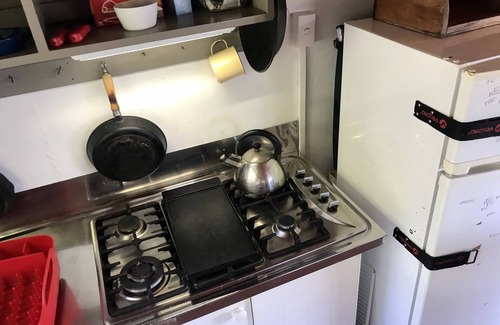 The entire island is off the grid and electricity at the Bach is solar generated. Charging devices is no problem but not possible to operate heavy load electrical items; ie hair driers, coffee machines etc.
