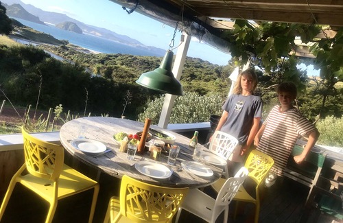 Family Bach with ocean views. The property has two bedrooms and a comfortable sleepout, each with a queen bed. There’s a well equipped galley, wood burner, indoor & outdoor showers. ( indoor shower has hot water, outdoor shower cold water only) Enjoy a ten minute walk to the golden sand beach. Walk, talk, surf, read a book & in the evenings gaze in wonder at the heavens above.