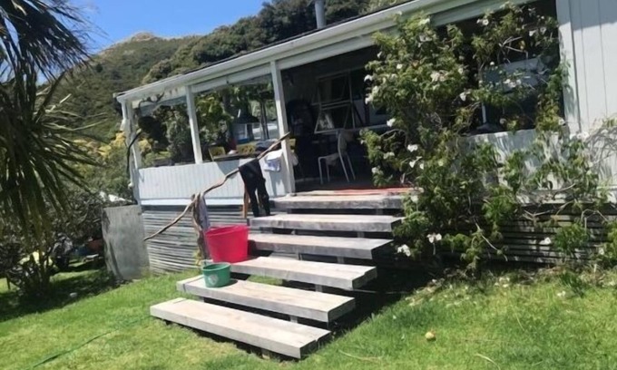 Water is harvested from rainfall. Please be careful with use. Drinkable from the tap. Drive or ten minute walk to house. Last 100 metres up a steep hill. Vehicle access requires crossing the beach & a shallow stream at low / mid tide.