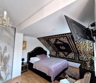 Meduza Wellness Spa s ubytovaním is a recently renovated apartment in Hlohovec where guests can make the most of its indoor pool, garden, and bar. This property offers access to a terrace, free private parking, and free Wifi. The wellness area includes a sauna, a hot tub, a wellness packages, and a beauty services. With 2 bedrooms, this spacious air-conditioned apartment features 1 bathroom with a hot tub, a shower, and bathrobes. A private entrance leads guests into the apartment, where they can enjoy some wine or champagne and chocolates or cookies. The apartment offers bed linen, towels, and daily room service. Buffet and continental breakfast options with fresh pastries, fruit, and juice are available. There is an on-site snack bar. Health Spa Piestany is 18 miles from the apartment, while Agrokomplex Nitra is 18 miles away. Piesťany Airport is 16 miles from the property.
