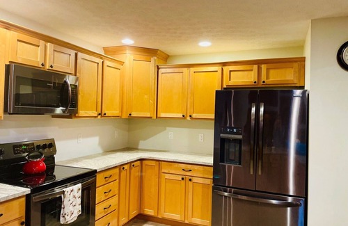 This space has been created with families having two and four legged children in mind. There are retractable baby gates that can be used to block stairs on the main floor, with a pack n' play, baby monitor, changing table, and booster seat available. Up to two dogs are absolutely welcome, and we have plenty of dog towels should your four-legged friends decide to chase the ducks into the lake. We have also equipped the home with family games and puzzles, books for adults and kids, children's toys, including an outdoor playhouse, and a dog bed and bowls for food and water.
