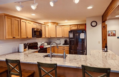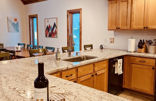 Bessie is located a few miles south of Davis, making it perfectly positioned for access to hiking, skiing, and shopping in the towns. Sitting right on Mallow Lake, you can roll right out of bed onto a paddle board or kayak for some morning exercise. Or just prop your feet up for some great bonding time with family and friends in this upscale cabin, which has recently been updated with new furniture, appliances, kitchen counters, and bathroom vanities.
