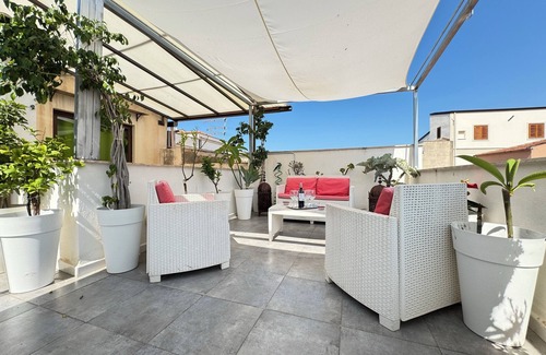 Meetup on the Terrace View is located in via del Celso, in the heart of the historic center of Palermo. Via del Celso has an ancient and fascinating history that dates back to the Punic-Roman period, when it constituted the northern border of the city, with a layout that has its roots in even more remote eras. Initially known as "ruga kes" or "sucac el kes" during the Arab domination, it later became "via del Cancelliere" in the 17th century, due to the monastery of the same name that was located there. The current name, "Celso", is an adaptation of its older name. The apartment is on two levels, on the second and third floors, and is furnished with antique furniture from the Liberty, Art Deco, 19th century Sicilian, and Vintage periods. It is embellished with antique paintings as well as objects from all over the world purchased by the owner, a travel enthusiast. Meetup on The Terrace View aims to be a meeting point for all people from all over the world, art connoisseurs and culture enthusiasts, within the historic setting of a 17th century building, where it is located, with a spectacular view of the roofs and monuments of Palermo in its private and exclusive use terrace. A few steps from the most important monumental sites of Palermo: The Cathedral, 500 meters away - 7 minutes; Norman Palace and Palatine Chapel, 900 meters away - 13 minutes; Quattro Canti, 300 meters away - 4 minutes; Massimo Theater, 550 meters away - 8 minutes; Fontana Pretoria, 400 meters away - 5 minutes; Church of Santa Maria dell'Ammiraglio, 500 meters away - 5 minutes; Casa Professa, 600 meters away - 8 minutes; Church and Monastery of Santa Caterina, 450 meters away - 6 minutes; Ballarò Market, 1 km away - 14 minutes; La Vucciria, 550 meters away - 7 minutes; Capo Market, 650 meters away - 9 minutes; Central Station, 1km and 200 meters away - 17 minutes; Bus Station, via Roma 289 for the airport 600 meters away. – 8 minutes; Via Maqueda, 180 mt. - 3 minutes.