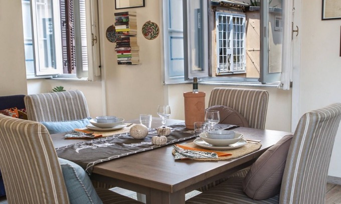 Charming and cozy apartment situated on the top floor of a historic 17th-century building, just a stone's throw away from Campo de Fiori and a delightful 5-minute stroll from Trastevere. Nestled in the heart of the city's historic center, it offers a glimpse into the vibrant social life of Rome. The apartment features a stunning terrace accessible to all guests, providing a panoramic view over the rooftops of Campo de Fiori.