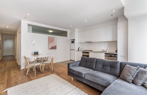 This modern 2-bedroom apartment in the heart of Melbourne offers comfort and convenience for up to 4 guests. Perfect for families or business travellers, it features two queen-sized beds, a stylish living area, and a well-equipped kitchen. Located near shops and public transport, enjoy easy access to the best of the city. Self-check-in, Wi-Fi, and air conditioning ensure a hassle-free stay in this bright and inviting apartment.