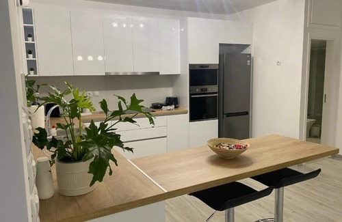 Welcome to a bright and spacious 90 sq.m. apartment designed for travelers who value peace, style, and convenience. The minimalist decor in calming earthy tones creates a sense of quiet sophistication, while thoughtful modern amenities ensure a smooth and relaxing stay.