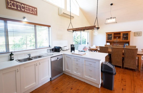 The Rye House has five bedrooms - two with queen size beds, two with double beds and one with two king single beds - and two bathrooms. We also have a porta cot and highchair for guests with a baby. The house is perfect for families or a weekend away with friends.