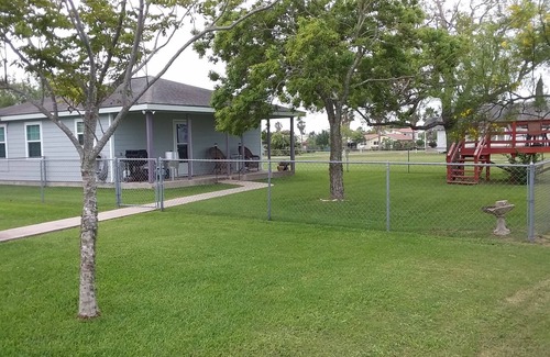 Best value at Magnolia Beach for a house with tons of amenities and only 2 mins to beach. This is a 2 bedroom/1 bath beach house with nice landscaped property, fenced backyard, large shade trees, and green grass to relax in comfort while still having a spectacular view of Old Town Lake and Magnolia Beach on the elevated deck. NO FIREWORKS OR OPEN FIRES allowed on property. The house will sleep 7 comfortably and has central AC/heat, smart TV with local channels and WIFI. Recently updated floors, freshly painted inside and freshly painted new siding and trim on outside. NO SMOKING.A pet fee is charged. Only 1 small pet is allowed. Please pick up yard after your pet. Do not discard in our trashcan. Please dispose offsite. No pets on the furniture or left uncrated while unattended. Fish or other game animals must be cleaned outside and not discarded in trashcan. Big discounts for long term rental Sept. to May only . 361-484-3562 for info if needed.