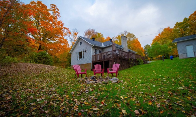 Welcome to this private all season cottage oasis with all the amenities you need for your getaway. Disconnect, unwind and enjoy the sunrise and watch the stars from our patio, enjoy s'mores by the bonfire, bake a pizza in our custom built oven outside,or cook a delicious meal in our equipped kitchen .