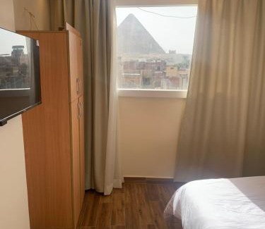 Providing a garden, Memphis Pyramids View offers accommodations in Cairo. The property is around a 18-minute walk from Great Sphinx, 1.5 miles from Giza Pyramids, and 8.8 miles from Cairo Tower. The guest house provides city views, a sun terrace, a 24-hour front desk, and free Wifi is available throughout the property. Overlooking the mountain, rooms in this guest house are accessible via private entrance and fitted with a flat-screen TV and a private bathroom with a bidet and free toiletries. The units are equipped with air conditioning, and certain units at the guest house have a balcony. The rooms are equipped with heating facilities. The breakfast offers continental, vegetarian options and fresh pastries and cheese are being served. There is an on-site lounge, and a grocery delivery service and a mini-market are also available. Sightseeing tours are available within a reachable distance. Guests can also warm up near the outdoor fireplace after a day of cycling. Tahrir Square is 9.2 miles from the guest house, while The Egyptian Museum is 9.4 miles from the property. Cairo International Airport is 19 miles away, and the property offers a paid airport shuttle service.
