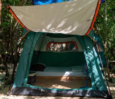 Menhir Maya offers accommodations in Xetna, 19 miles from Playa del Carmen Maritime Terminal and 20 miles from Tulum Archeological Site. A 15-minute walk from Kantenah Beach and 18 miles from ADO International Bus Station, the property features a garden and a terrace. The campground provides garden views, a year-round outdoor pool, and free Wifi is available throughout the property. At the campground, units include a outdoor furniture. There's also a dining area and a fully equipped kitchen with a fridge and kitchenware. At the campground, all units come with a shared bathroom and bed linen. You can play table tennis and darts at the campground. Xel Ha is 11 miles from Menhir Maya, while Cenote Dos Ojos is 15 miles away. Cozumel International Airport is 27 miles from the property.