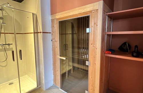 Recreational amenities at the hotel include a sauna and a fitness center.