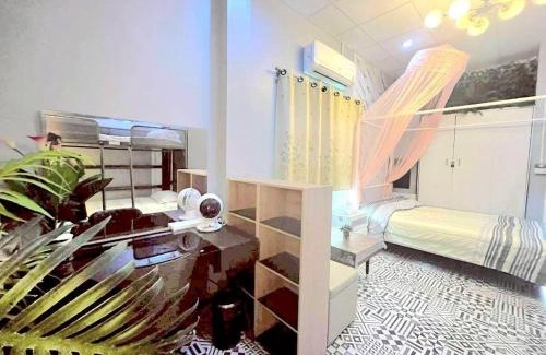 BathroomFree toiletries, Toilet, Toilet paper, Towels/Sheets (extra fee), Shower cap, Bathrobe, Slippers, Private bathroom, Body soap, Hairdryer, Towels, Shampoo, ShowerMedia & TechnologyTV, Flat-screen TVGeneralIroning facilities, Air conditioning, Fire extinguisher, Fan, Trash cans, Key card access, Tile/Marble floor, Iron, Key access, Mosquito netLiving AreaDesk, Sitting area, Dining areaKitchenElectric kettle, Toaster, Dining tableBedroomWardrobe or closet, LinensViewCity view, Quiet street viewAccessibilityUpper floors accessible by stairs onlyBuilding CharacteristicsPrivate apartment in buildingRoom AmenitiesNon-feather pillow, Drying rack for clothing, Socket near the bed, Clothes rackFood & DrinkBottle of waterPhysical distancingSingle-room AC for guest accommodationCleanliness & disinfectionHand sanitizer |