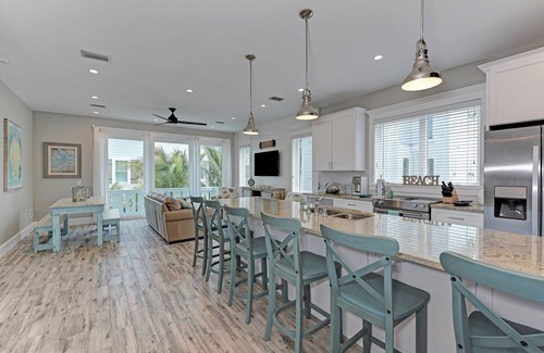 Relax and unwind in this b custom built and professionally decorated 6 bedroom 4 bath home located just steps from both the Gulf of Mexico and the bay. This coastal style property boast luxurious views from each room and features smart tvs in all the bedrooms as well as the living room and the outdoor pool area. With a bunk-room for the kids and king beds in the other 5 bedrooms there is lots of room for you and your family to spread out and enjoy your island vacation. The custom gourmet kitchen is large enough to cook for the whole family and the outdoor pool area features a grill and outdoor seating. The kitchen is stocked with pots, utensils, coffee pot, blender and service for 12. With amenities like bikes, beach chairs and umbrella, pool tools and a wagon to put it all in all you need to bring is your suitcase and groceries. Take the free trolley to Bean Point, or down to historic Bridge Street. Eat at restaurants like Beach Bistro, Chateau Anna Maria, grab burger's at Skinny's, or watch the sunset at the Sandbar. Go parasailing, take a sunset cruise or paddleboard on the crystal clear blue waters in the Gulf of Mexico.