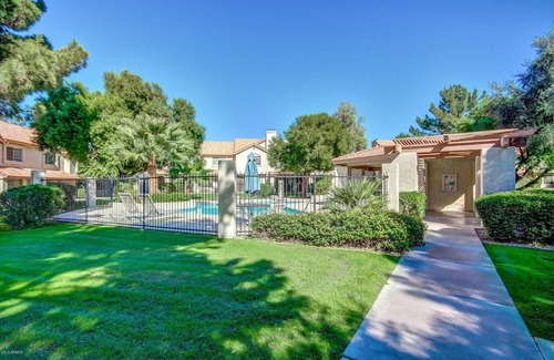The complex has a pool area in a park-like setting. The community boasts great shopping, restaurants, hiking and easy access to freeways to get you where you want to go! Both airports are reasonable drive times (Mesa-Gateway is about 10 minutes and Sky Harbour is about 20 Minutes away). Come and enjoy the sun!