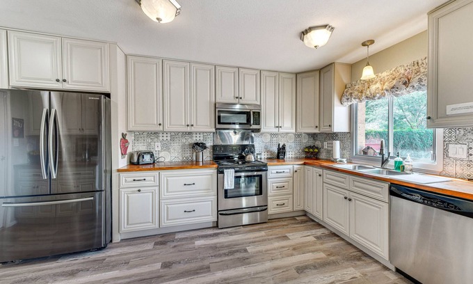 KITCHEN: Fully equipped w/ blender, drip coffee maker, cooking basics, spices, stainless steel appliances