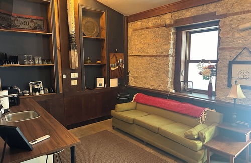 Welcome to Old Stone Alcove! This downtown situated, enchanting two-bedroom suite perfectly marries the charm of rustic design with modern comforts. Enjoy the beauty of exposed stone walls and wooden beams that create a warm and inviting atmosphere. The suite is located just moments from the finest restaurants, boutiques, and local attractions, Old Stone Alcove offers an ideal retreat for those seeking a blend of tranquility and convenience.