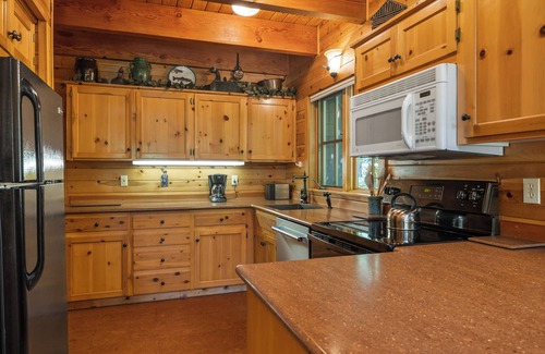 Downstairs, the private master bedroom has a comfortable queen bed and bath. The 36-inch HD TV with satellite dish reception, DVD and CD player offer the best of both worlds by complementing your cabin experience with all of the modern amenities.