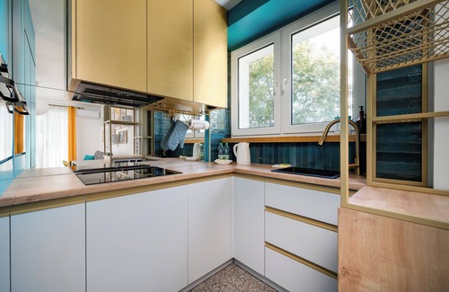 Metro Słodowiec Charming Apartment includes a living room with a sofa bed and a kitchenette, a bedroom with a comfortable double bed, a bathroom, and a balcony where guests can unwind and enjoy morning coffee or an evening glass of wine. Guests can make use of many amenities provided in the apartment, including free Wi-Fi, a washing machine, an iron, a hairdryer, a dishwasher, an oven, a fridge with a freezer, a kettle, and kitchenware. In addition, the apartment is equipped with air conditioning, providing great comfort, especially during hot days. Guests can use the public parking available nearby without guaranteed spaces and with a possible additional fee.
