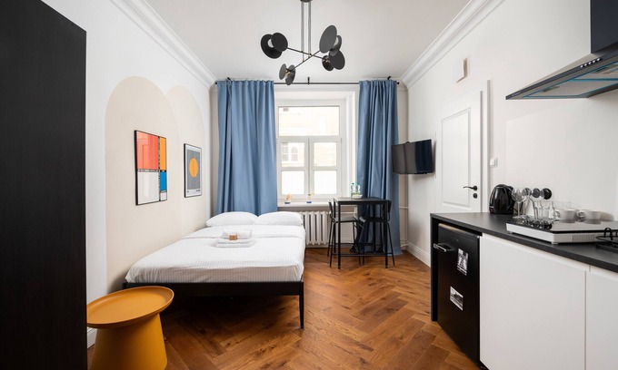 Metro Wileński Varsovia Studio #1 has a well-equipped room with a comfortable double bed, kitchenette and bathroom. Guests have a range of practical amenities, including free WiFi, cable TV, iron fridge, kettle, toaster and kitchenware. In the common hall there is a utility room with washing machine, dryer and cleaning accessories.