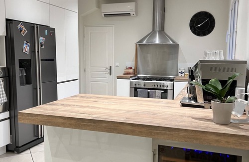 Pretty house of style "Bastide" of 120m2 in the peace of a dead end allying modernism and the Mediterranean, you will be seduced by its big external terrace of 30m2, its reassured swimming pool (5,70MX3,70M), its private ground of petanque, its table ping-pong and barbecue, outdoor bar all on 450m2 of land completely enclosed. Ideal for a family. Composed of a large bright living room (air-conditioned, flat screen 160cm) and an open kitchen fully equipped (American fridge, piano cooking) all on 50m2, 3 bedrooms (all air-conditioned), a bathroom. bath (with bath, shower and double sink), laundry (washing machine, dryer, extra fridge). The cleaning and pool maintenance services are included.