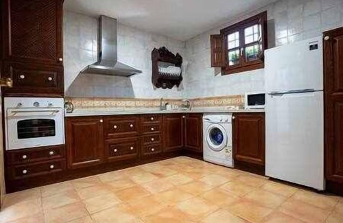 Two floors make up this beautiful Cordoban house: the ground floor has a fully equipped living room and kitchen, a toilet and a small patio with typical decoration of the city. The upper floor has an en-suite bedroom that includes a double bed and a double Chaise Longue sofa bed, a bedroom with two single beds with views of the city and the patio and a full bathroom.
